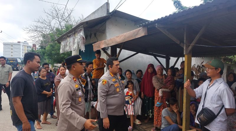 Kapolsek Kasemen Polresta Serkot mendampingi Bapak Kapolresta Serkot memberikan Bantuan untuk Pengungsi Banjir di Kasemen.